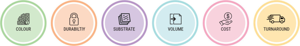 Higher quantity coupled with large size really lends itself to the screen-printing format. When coupled with direct-to screen imaging technology, the printed image result is also amazing highlighting vibrant rich colours. When adding special spot colour sparkle effects or clearcoat varnish effects (like dripping water on a cold drink), then screen print is your clear choice.